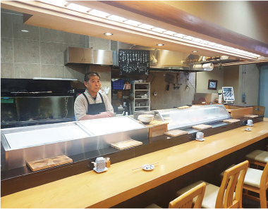 寿司割烹、ふぐ料理店と聞けば高級なお店のイメージが先行しますが、カウンターで一人でお食事される方や若い方の来店も多いとのことです。飲みながらのんびりと寿司やつまみを味わってほしいと店主の今須様。基本は店主と奥様のお二人で切り盛りされているので大人数の場合は予約がおすすめです。(奥にテーブル席もあります。)