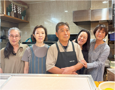 松山、畑中、佐藤のベテラン社員3名が仕事を終えて訪れたのは、熱海駅より車で約7分、熱海中心部の中央町に店を構える「富其代亭(ふきよてい)」。戦後まもない頃、先々代が店を開き、現在3代目の店主が東京の有名料亭で修行した後、店を継いでから約35年。老舗の寿司割烹・ふぐ料理店「富其代亭」は、地元の常連客や熱海を訪れた観光客にも愛され続けているお店です。