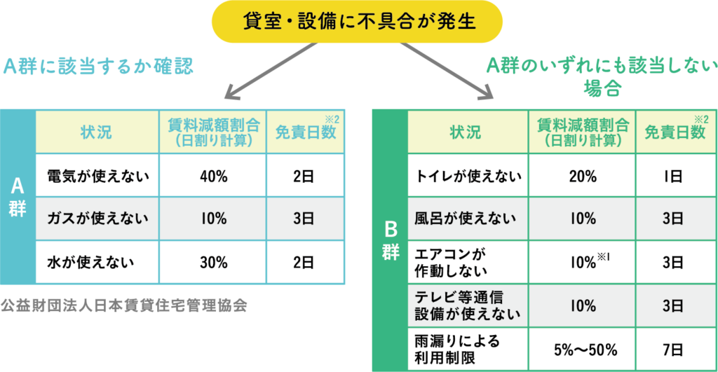 ※1 発生した季節・地域・間取りや設置台数を考慮し、必要に応じて 賃料減額割合を調整する。