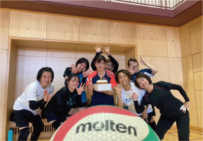 中学からバレーボールを始め、結婚後は6人制から9人制へとシフト、クラブチームでマスターズ全国大会ベスト8になったこともあります!今はチームの仲間と楽しくバレーを続けていくのが目標です。